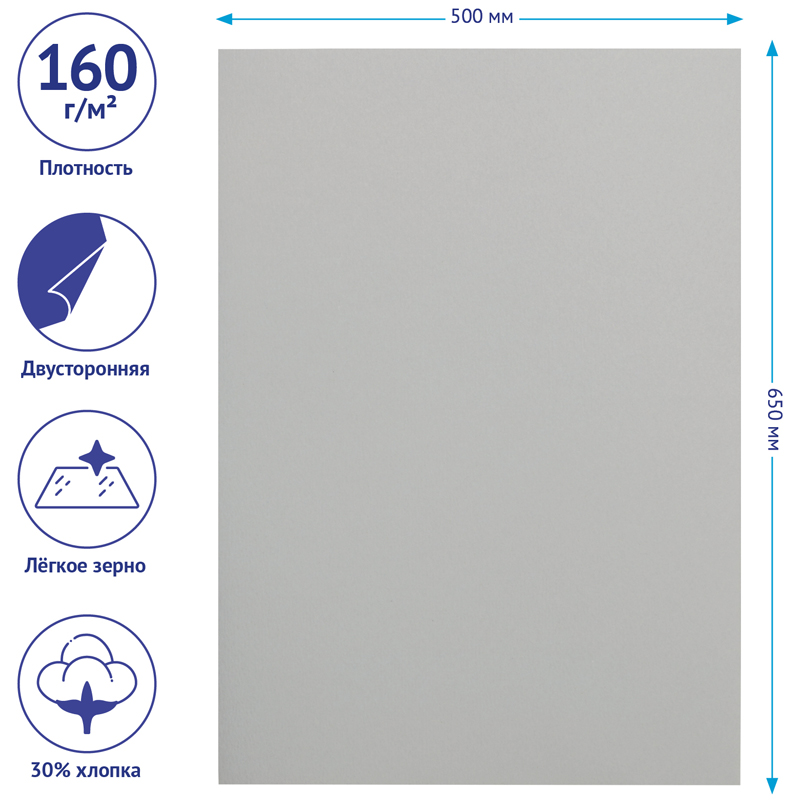 Цветная бумага Clairefontaine Etival color от французского производителя идеально подходит для творческих работ и рисования. Она имеет размер 500*650 мм, что позволяет использовать один лист для разных направлений в творчестве. Цвет тонированной в массе бумаги – светло-синий. Плотность бумаги – 160 г/м2. В наборе 24 листа. <br/>Цветную бумагу можно использовать для рисования карандашом, пастелью, гуашью, акрилом. Двусторонняя бумага имеет две разные поверхности: гладкая с одной стороны, лёгкое зерно – с другой. Состав: бескислотная, глубоко окрашенная, 100% чистая целлюлоза с добавлением 30% хлопка. В серии Etival color 44 глубоких и светостойких цвета. Бумага упакована в пакет. <br/>• Количество листов: 24;<br/>• Цвет: светло-синий;<br/>• Плотность бумаги: 160 г/м2;<br/>• Размер: 500*650 мм