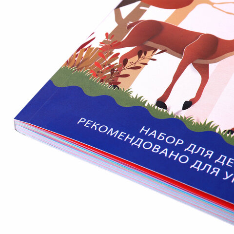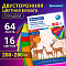 Набор двусторонней цветной бумаги на склейке плотностью 65 г/м2 включает 64 листа формата А4 (200х280 мм) в 16-ти разнообразных и насыщенных однородных цветах. Листы легко режутся и сгибаются.