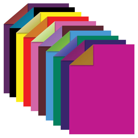 Набор мелованной (глянцевой) двусторонней цветной бумаги плотностью 80 г/м2 включает 10 листов формата А4 (200х280 мм) в 20-ти разнообразных и насыщенных однородных цветах. Листы упакованы в картонную папку, легко режутся и сгибаются.