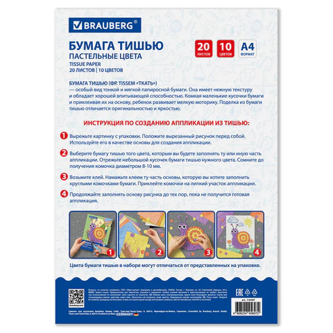 Данный набор бумаги тишью предназначена для детского творчества. Может использоваться детьми от 3 лет для развития моторики и воображения.