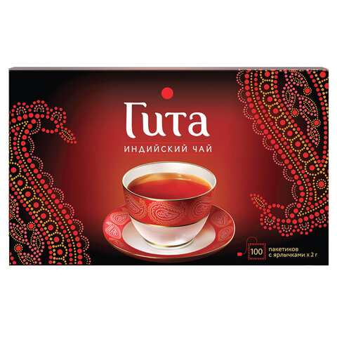 Чай ПРИНЦЕССА ГИТА "Индийский" черный, 100 пакетиков по 2 г, 0249-16-1