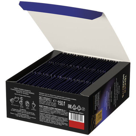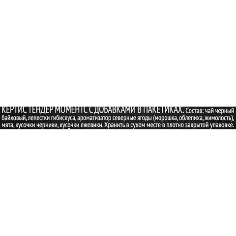 Чёрный чай в пакетиках с тонким ароматом северных ягод, кусочками черники и ежевики. Найди вдохновение для каждого дня в чашке ароматного чая Curtis Tender Moments. Деликатный ягодный аромат и нежный вкус.