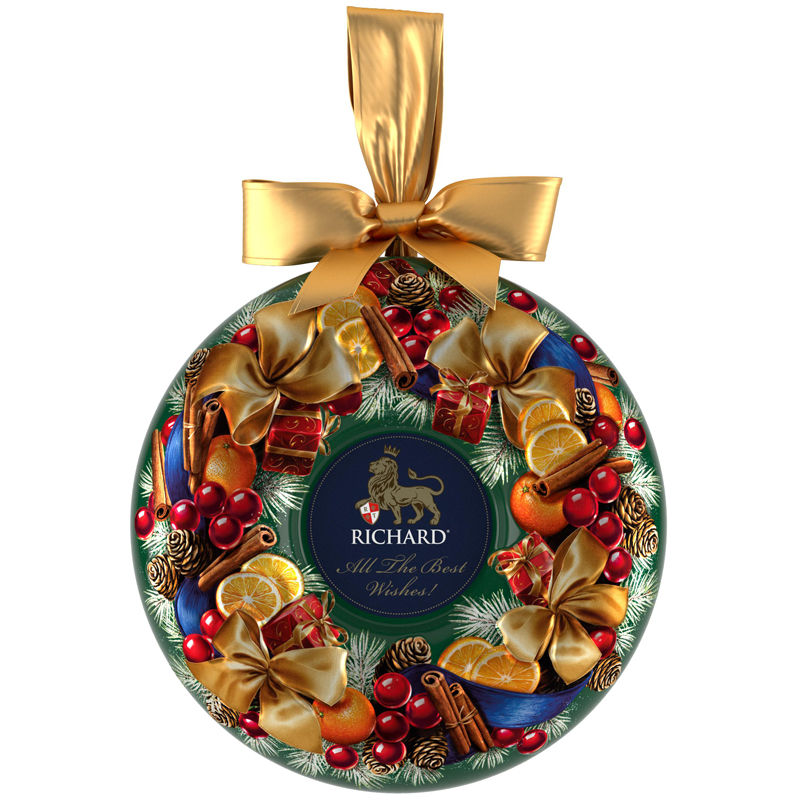 Подарок с наилучшими пожеланиями!<br/>Подарите чудесное ощущение зимних праздников вместе с коллекцией королевского чая RICHARD ALL THE BEST WISHES. Ароматный листовой чёрный чай с апельсином и пряными специями согревает и поднимает настроение. Яркая упаковка в виде классического рождественского венка с шёлковым бантом делает коллекцию идеальным подарком в период зимних праздников.