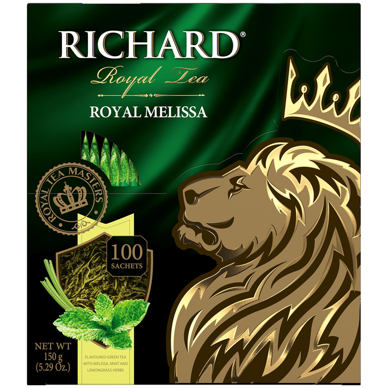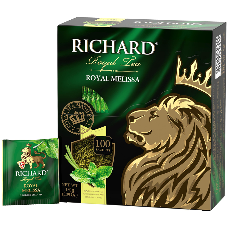 Китайский зеленый чай Richard Royal Melissa с мелиссой, мятой, лемонграсом и цедрой цитрусовых.<br/>Восхитительный микс нежного зеленого чая, ароматного лемонграсса и освежающей мелиссы наполнит легкостью и поможет восстановить внутреннюю гармонию.<br/>Королевская коллекция чая. Нежный китайский зеленый чай<br/>Яркие ноты лемонграсса и освежающей мелиссы<br/>Удобный формат пакетиков в индивидуальных сашетах. RICHARD - это черные, зеленые и травяные чаи с лучших плантаций мира. Все букеты RICHARD созданы в традиционном английском стиле, и каждый обладает своим особенным характером. Сочетание различных сортов чая, душистых трав и специй помогает каждому букету чая RICHARD сверкать всеми гранями Королевского вкуса.