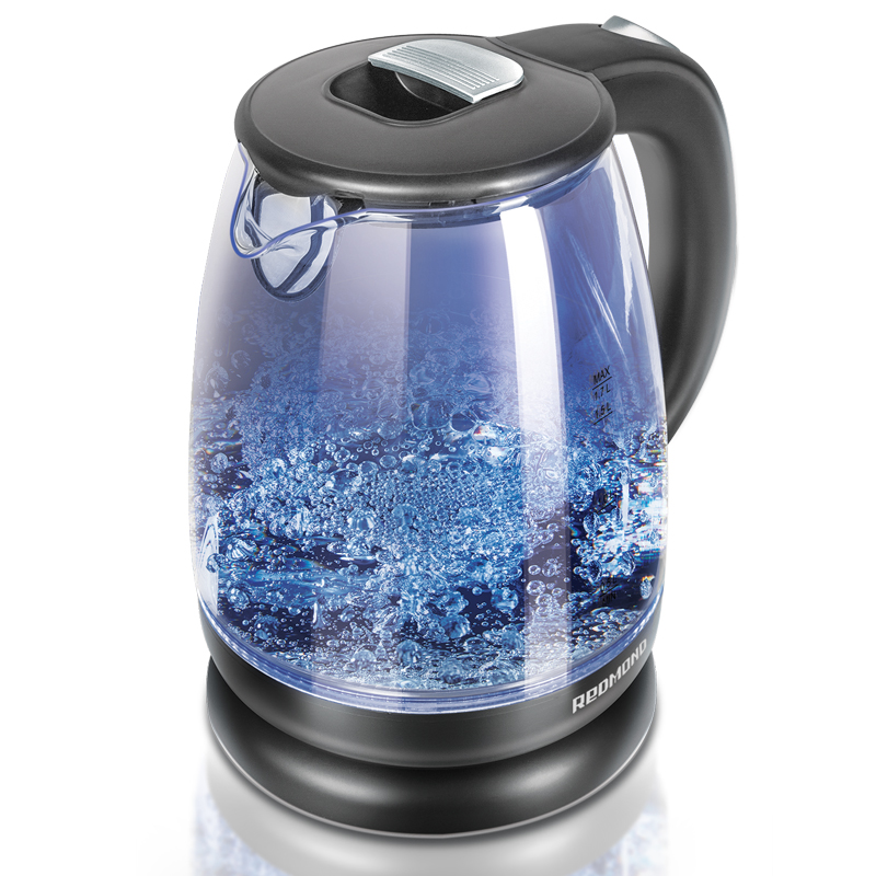 Электрический чайник REDMOND RK-G178 — новая чрезвычайно стильная модель с корпусом из термостойкого стекла и изящной голубой подсветкой. Насладитесь надёжностью, демократичностью и лаконичностью этого устройства! Получите удовольствие от бурлящего танца пузырьков. Чайник G178 имеет систему автоматического отключения при закипании и при недостаточном количестве воды. Благодаря возможности вращения прибора на подставке на 360 ° им очень удобно пользоваться с любой стороны. Мощный дисковый нагревательный элемент кипятит воду максимально быстро. G178 обладает вместительным объёмом (1,7 л), что идеально подойдёт для большой семьи. Для очищения воды в чайнике предусмотрен фильтр от накипи. Надёжный переключатель, удобная кнопка открывания крышки и большая ручка сделают обращение с этим кухонным устройством исключительно комфортным. Вы влюбитесь в него с первого чаепития!