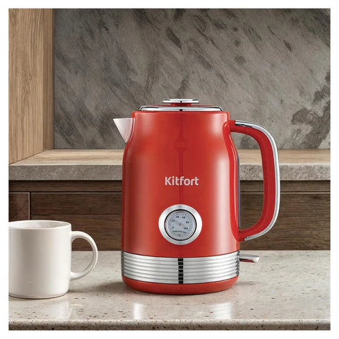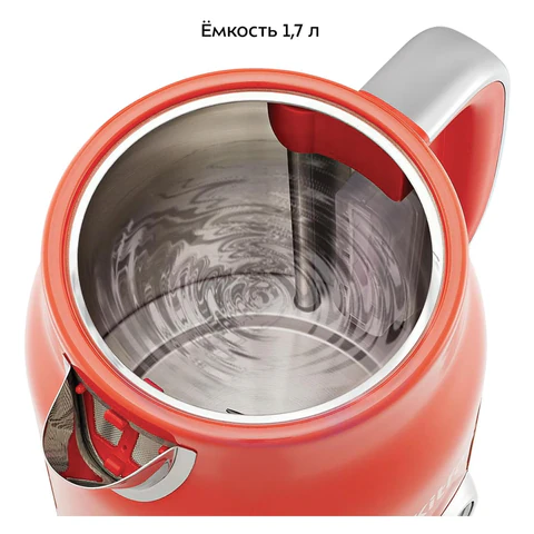 Яркий красный корпус из нержавеющей стали с термоустойчивыми пластиковыми элементами станет настоящим украшением интерьера, а мощность 2200 Вт обеспечивает быстрое кипячение до 1,7 литра воды всего за несколько минут.