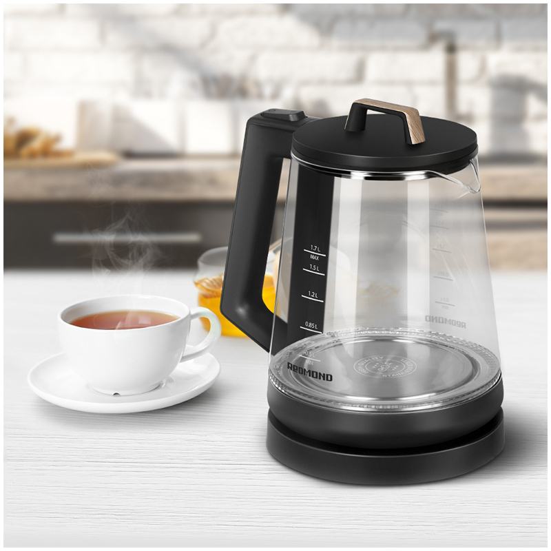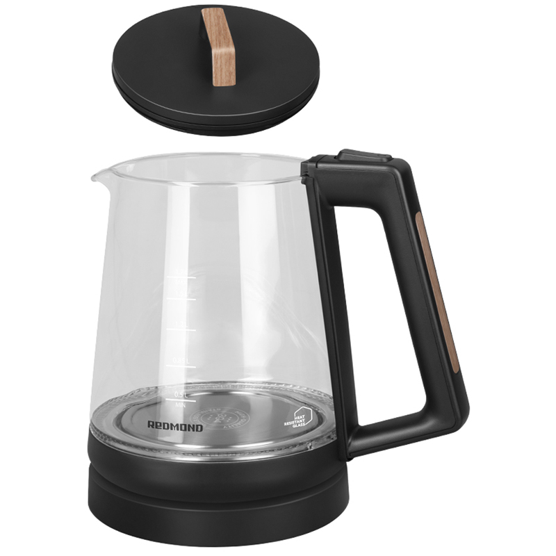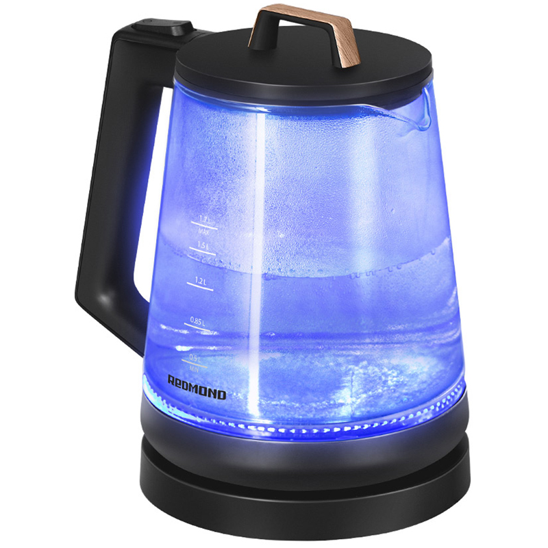 Электрический чайник REDMOND RK-G190 – современный прибор для кипячения воды с лаконичным дизайном. Благодаря сочетанию трех фактур – стекла, пластика и древесины, чайник легко впишется как в классические и актуальные современные интерьеры.