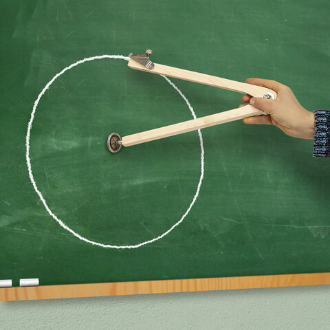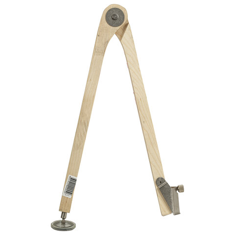 Деревянный циркуль с конструкцией, позволяющей проводить чертежные работы на школьной доске.