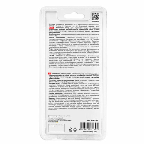 Чистящий набор BRAUBERG для ухода за экранами плазменных панелей, ЖК-мониторов, телевизоров и смартфонов легко удаляет пыль, отпечатки пальцев и другие загрязнения.