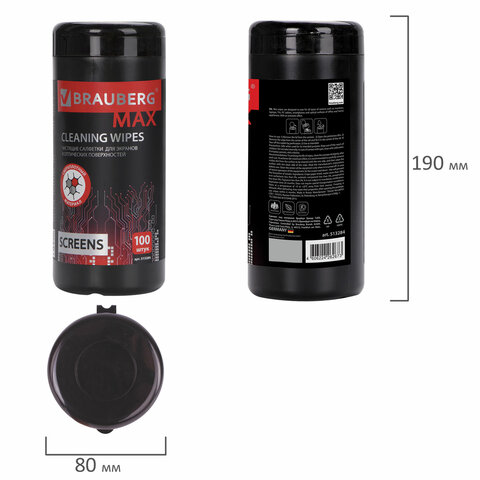 Чистящие влажные салфетки BRAUBERG MAX предназначены для ухода за экранами LCD, TFT-мониторов, ноутбуков, телевизоров, смартфонов, оптики и других поверхностей.