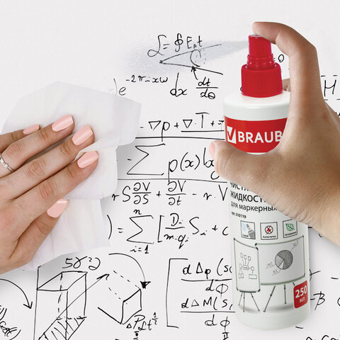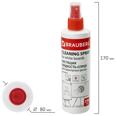 Чистящая жидкость-спрей BRAUBERG предназначена для очистки поверхности маркерных досок.