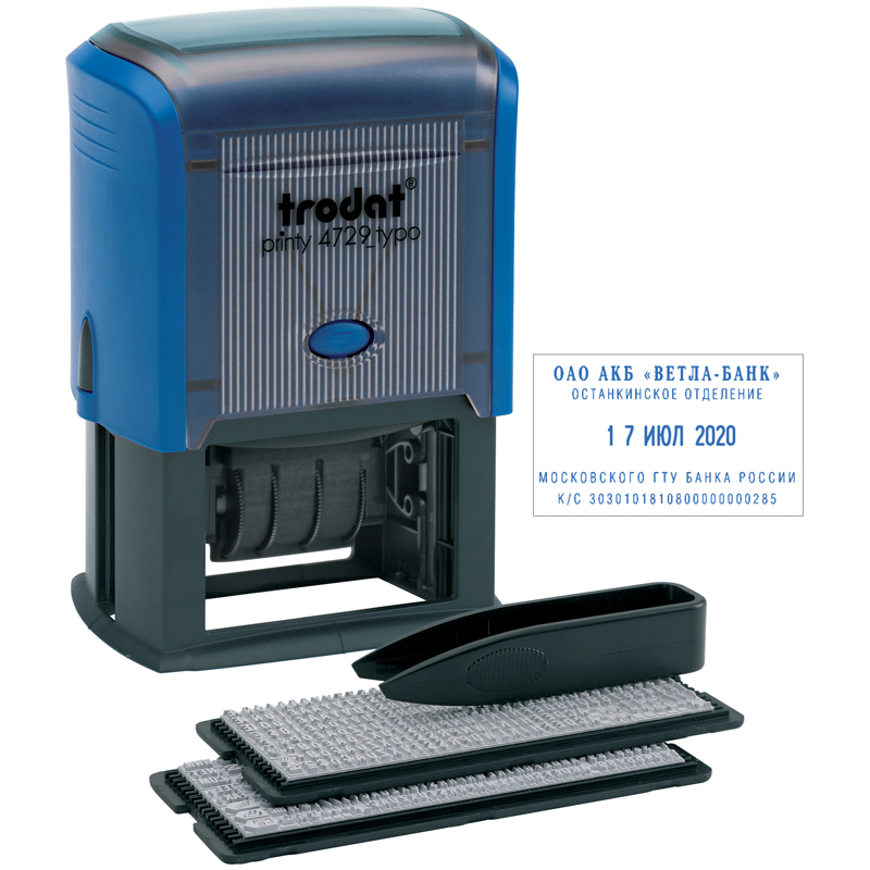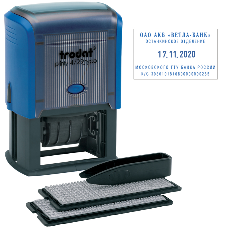 Датер самонаборный Trodat 4729 Bank, 50*30мм, пластик, 4стр.+дата, 4мм, 2 кассы, синий