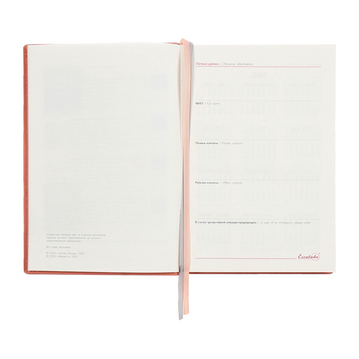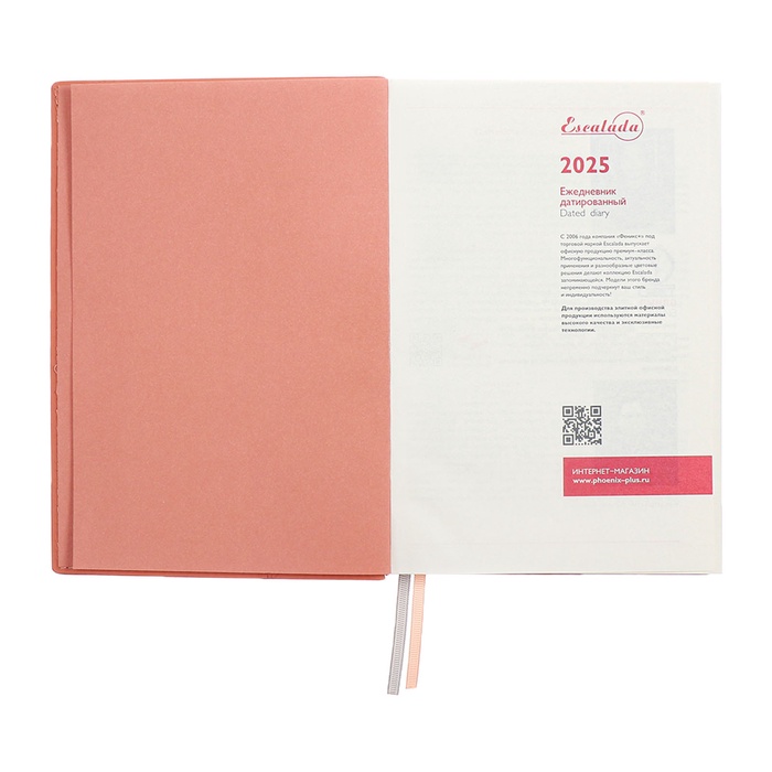 Ежедневник датированный 2025, А5, 176 листов ESCALADA, твёрдая обложка из искусственной кожи, тиснение фольгой, ляссе, кремовый блок 70 г/м2, розовый