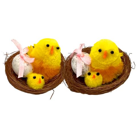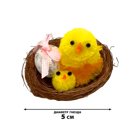 Миниатюрные фигурки изображают милых птенцов, уютно устроившихся в плетёном гнёздышке — трогательный образ новой жизни, гармонии и семейного тепла. Такой декор станет изюминкой интерьерного оформления дома, офиса или витрины, фотозоны на празднике, подарочной упаковки.