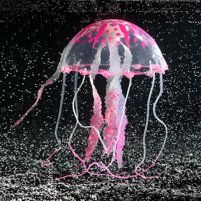 Декор для аквариума "Медуза" силиконовая, флуоресцентная, 10 х 10 х 20,5 см, розовая