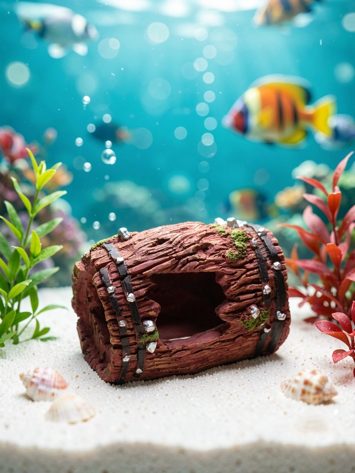 Декор для аквкариума, грот - Дырявый бочонок, 9 х 6 см