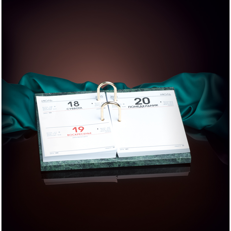 Подставка под перекидной календарь Delucci может стать замечательным украшением рабочего стола. Корпус подставки выполнен из роскошного натурального зелёного мрамора, а фурнитура – из прочного металла. Размер подставки под перекидной календарь Delucci выполнена в размере 216 мм*201 мм*40 мм. Упакована в бордовую коробку