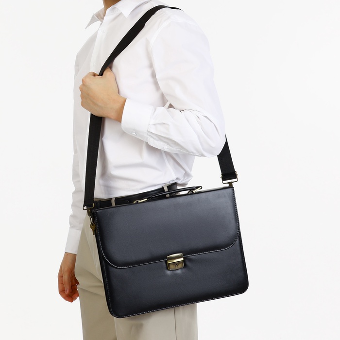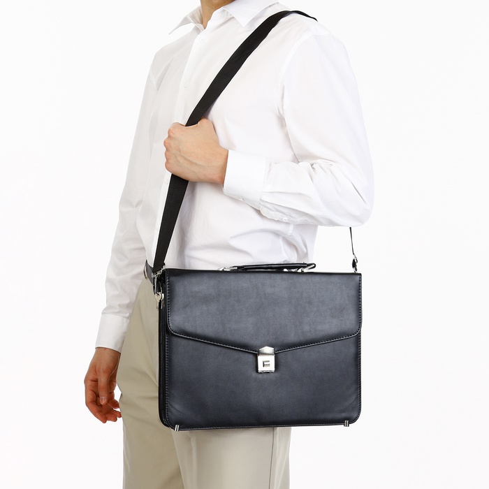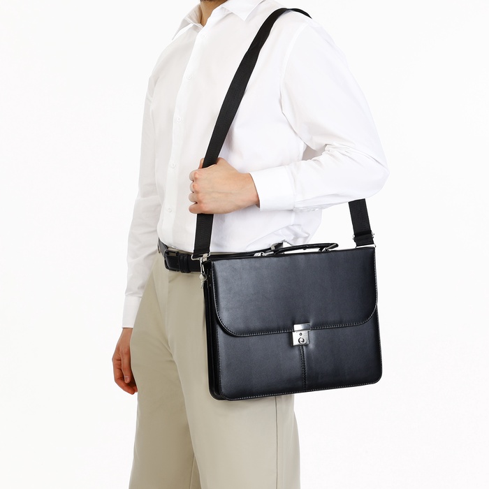 Сумка мужская деловая на клапане, цвет чёрный