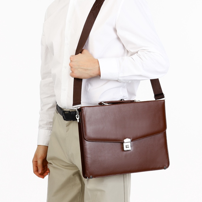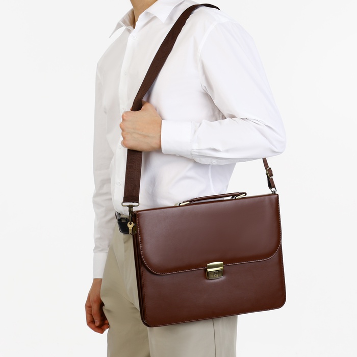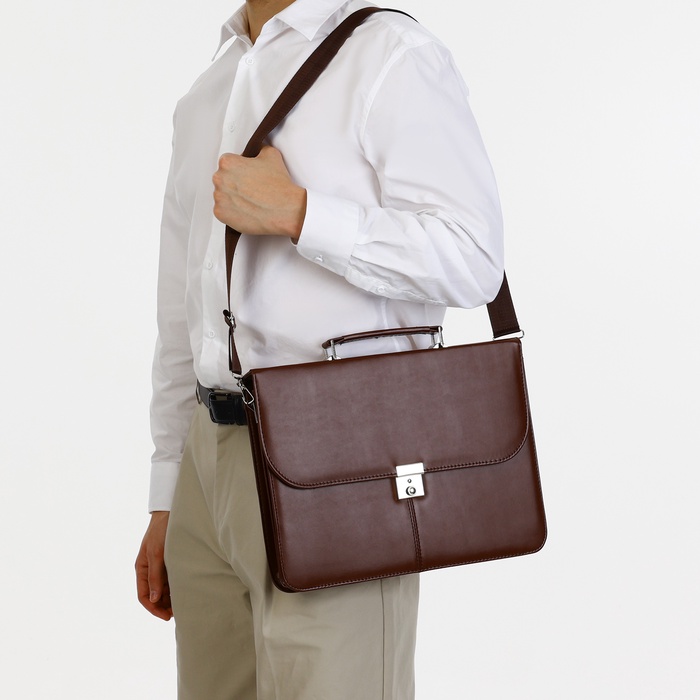 Сумка мужская деловая на клапане, цвет коричневый