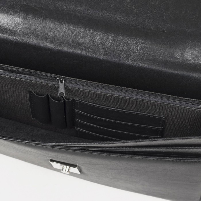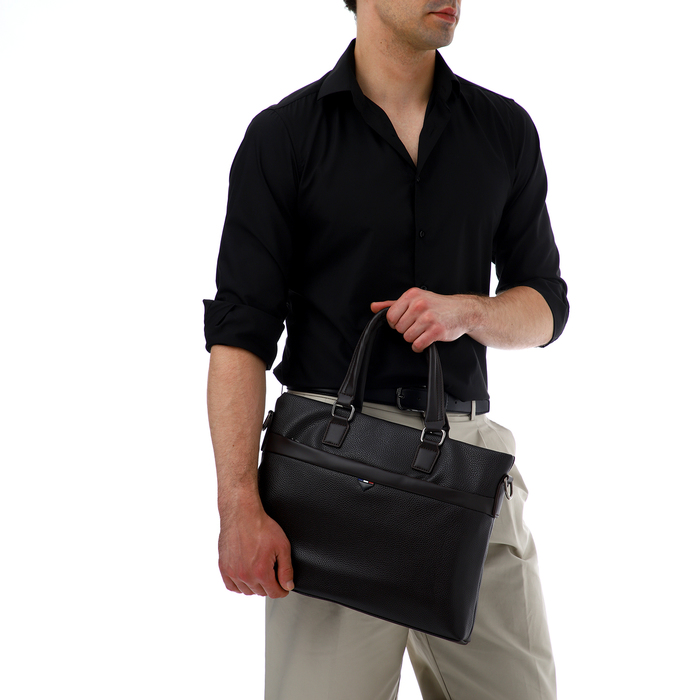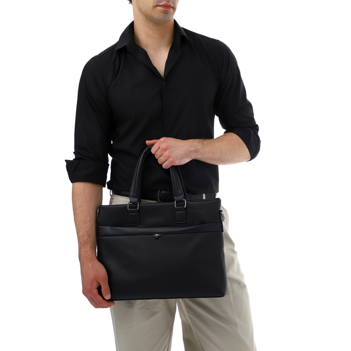 Сумка мужская деловая TEXTURA, 2 наружных кармана, цвет чёрный