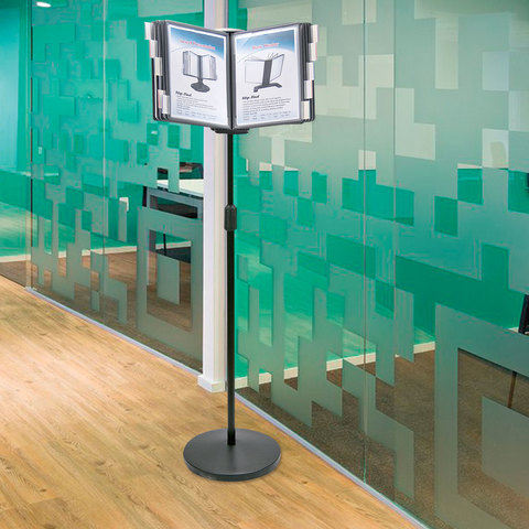 Напольная демонстрационная система BRAUBERG позволяет удобно и быстро разместить информацию о компании, о предлагаемых товара, услугах и ценах, инструкции для персонала и др.