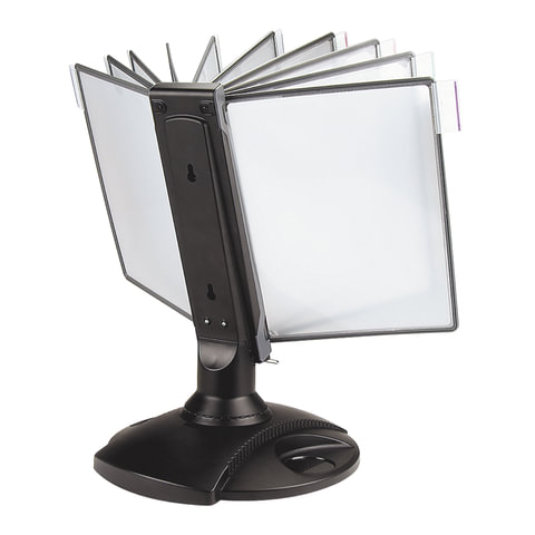 10 двухсторонних панелей серого цвета позволяют разместить одновременно до 20 листов формата А4. Прочные и гибкие литые рамки панелей изготовлены из полипропилена, пригодного для повторной переработки и дальнейшего использования. Демопанели оснащены съемными ярлычками-табуляторами для маркировки и удобного поиска нужной информации. Карман демопанели из прочного прозрачного материала с антибликовым покрытием надежно защитит документы от внешних воздействий. Устойчивое основание и поворот на 360 градусов гарантируют удобство пользователю и быстрый доступ к документу. Возможно настенное размещение. Стильный серый цвет пластикового корпуса подойдёт для большинства современных интерьеров.