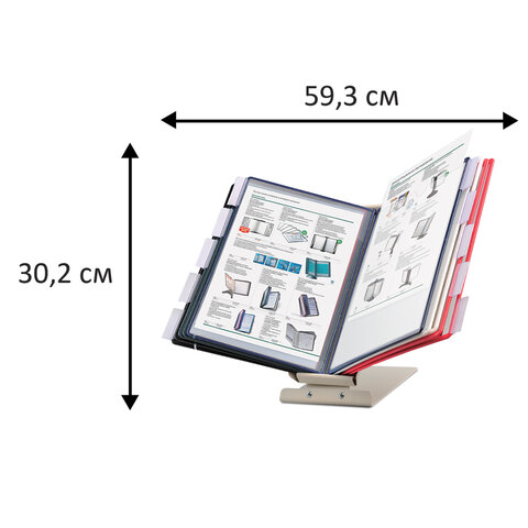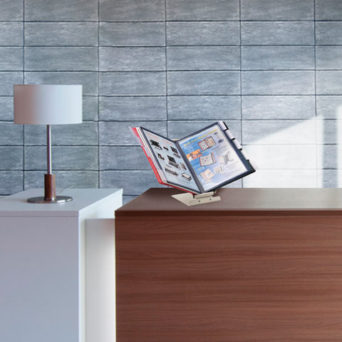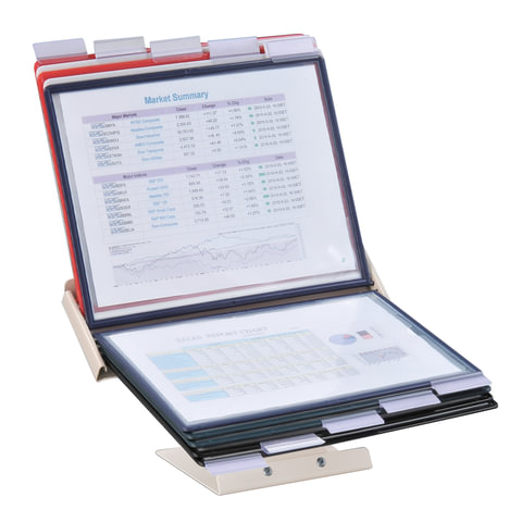 10 двухсторонних цветных панелей позволяют разместить одновременно до 20 листов формата А4. Прочные и гибкие литые рамки панелей изготовлены из полипропилена, пригодного для повторной переработки и дальнейшего использования. Демопанели оснащены съемными ярлычками-табуляторами для маркировки и удобного поиска нужной информации. Карман демопанели из прочного прозрачного материала с антибликовым покрытием надежно защитит документы от внешних воздействий. Устойчивое металлическое основание с антискользящей поверхностью и крепление панелей в вертикальном и горизонтальном положениях гарантируют удобство пользователю и быстрый доступ к документу. Возможно как настольное, так и настенное размещение. Стильный серый цвет металлического корпуса подойдёт для большинства современных интерьеров.