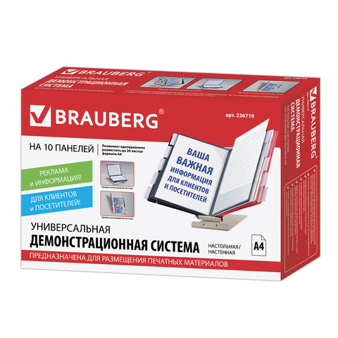 Настольная демонстрационная система BRAUBERG SOLID позволяет удобно и быстро разместить информацию о компании, о предлагаемых товара, услугах и ценах, инструкции для персонала и др.