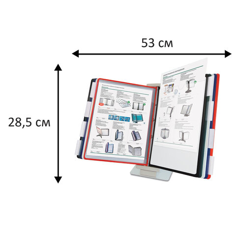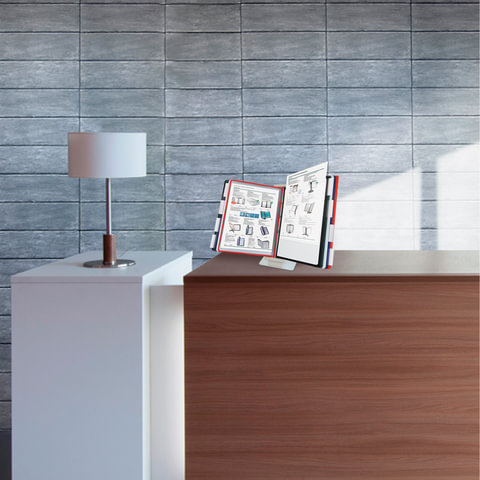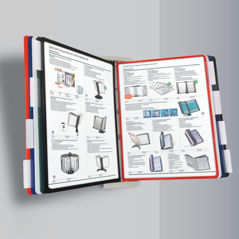 10 двухсторонних цветных панелей позволяют разместить одновременно до 20 листов формата А4. Прочные и гибкие литые рамки панелей изготовлены из полипропилена, пригодного для повторной переработки и дальнейшего использования. Демопанели оснащены съемными ярлычками-табуляторами для маркировки и удобного поиска нужной информации. Карман демопанели из прочного прозрачного материала с антибликовым покрытием надежно защитит документы от внешних воздействий. Возможно как настольное, так и настенное размещение. Стильный серый цвет пластикового корпуса подойдёт для большинства современных интерьеров.