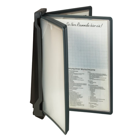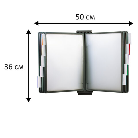 10 двухсторонних панелей серого цвета позволяют разместить одновременно до 20 листов формата А4. Прочные и гибкие литые рамки панелей изготовлены из полипропилена, пригодного для повторной переработки и дальнейшего использования. Демопанели оснащены съемными ярлычками-табуляторами для маркировки и удобного поиска нужной информации. Карман демопанели из прочного прозрачного материала с антибликовым покрытием надежно защитит документы от внешних воздействий. Винты для крепления демосистемы к стене поставляются в комплекте. Стильный серый цвет пластикового корпуса подойдёт для большинства современных интерьеров.