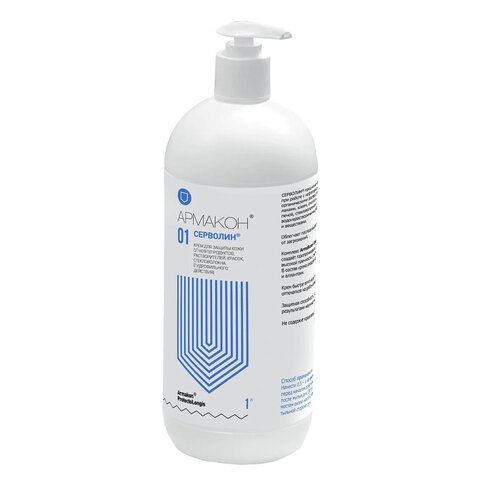 Крем защитный 1 л, АРМАКОН СЕРВОЛИН, гидрофильный, от нефтепродуктов, красок, дозатор, 1161