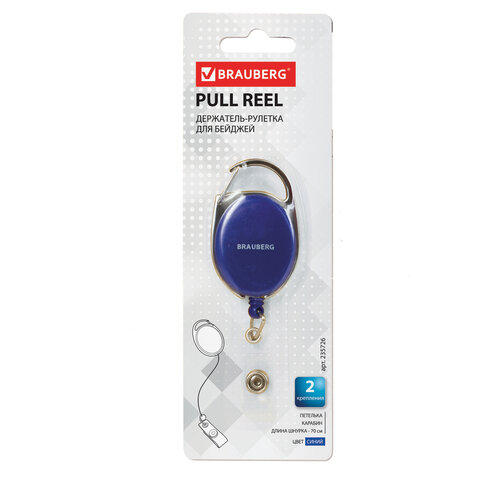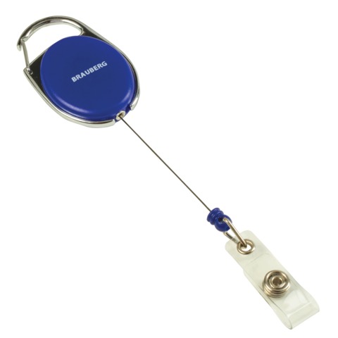 Держатель-рулетка для бейджей, 70 см, 2 карабина, синий, в блистере, BRAUBERG, 238239