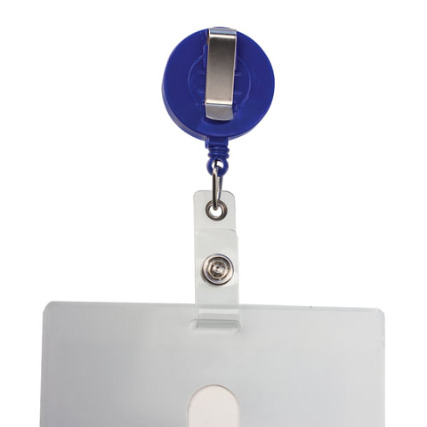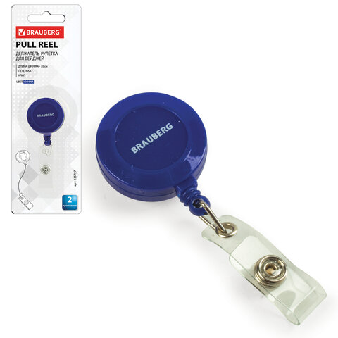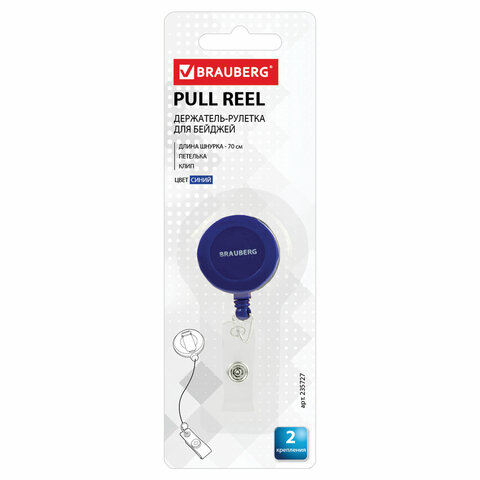 Держатель-рулетка для бейджей, 70 см, 2 карабина, синий, в блистере, BRAUBERG, 238239