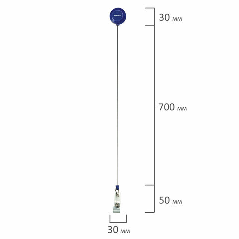 Держатель-рулетка для бейджей 70 см, с лентой 45 см, синий, BRAUBERG EXTRA, 238837