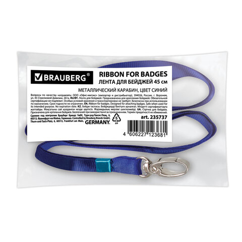 Лента BRAUBERG подойдет для любого бейджа. Надежный тип крепления.