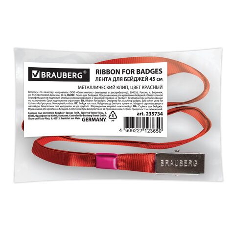 Лента BRAUBERG подойдет для любого бейджа. Надежный тип крепления.
