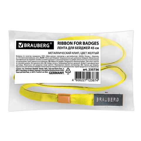 Лента BRAUBERG подойдет для любого бейджа. Надежный тип крепления.