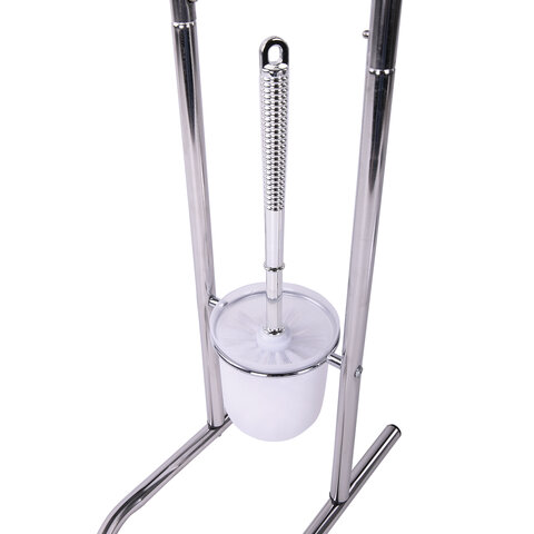 Изделие представляет собой эргономичную напольную стойку с держателем для туалетной бумаги и подставкой для ершика. Стойка и держатель для туалетной бумаги изготовлены из хромированной стали. Ершик и подставка для ершика изготовлены из пластика. Ершик входит в комплект. Размер - 160х785х300 мм.