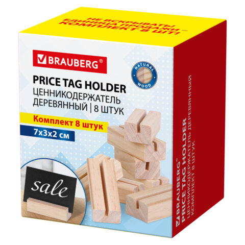 Ценникодержатель деревянный (ценники, реклама, фото) 3,5х3,5х3,5 см КОМПЛЕКТ 6 шт, BRAUBERG, 291311