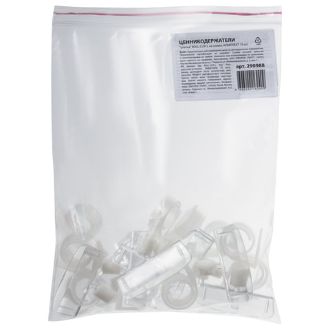 Универсальный держатель ценника "улитка", позволяющий крепить ценник на посуду, продукты, край полки разной толщины. Угол наклона ценника регулируется с помощью шарниров.