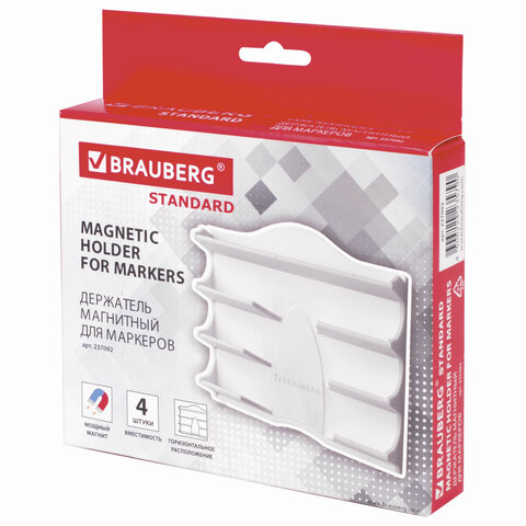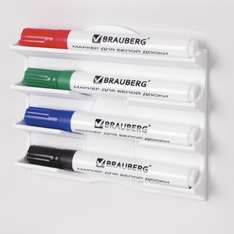 Магнитный держатель BRAUBERG "Standard" предназначен для удобного хранения 4-х маркеров на доске одновременно. Маркеры не входят в комплект.