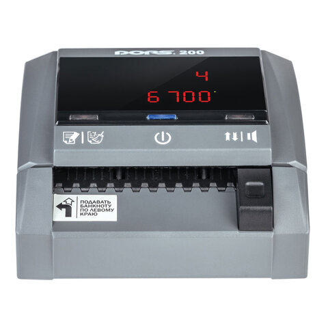 Укомплектован специальным лотком-направителем, который подаёт проверенные банкноты под блок детекции, а также съёмным ограничителем, который избавляет от необходимости прижимать банкноту к бокам прибора.