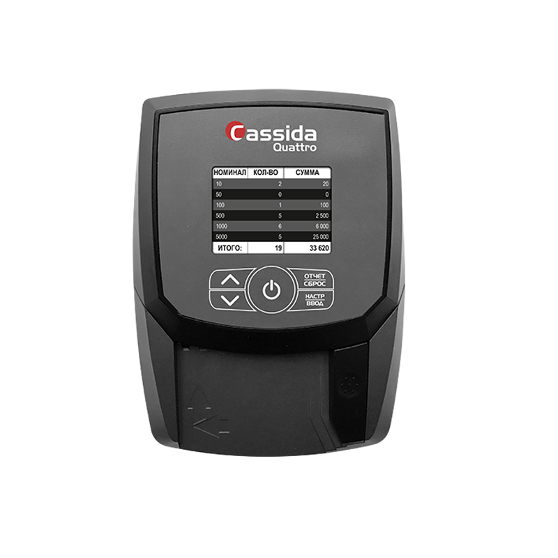 Информативный интерфейс позволяет видеть в едином удобном отчете количество просчитанных банкнот и сумму пересчета по каждому из номиналов. Удобная настройка модуля позволяет выстроить работу с детектором индивидуально, в зависимости от формата магазина и кассы, что позволяет достигнуть не только максимального уровня удобства использования для кассира, но и увеличить скорость работы, а значит улучшить уровень и скорость обслуживания клиентов. Все шесть уровней проверки в любой из четырех ориентаций банкноты.