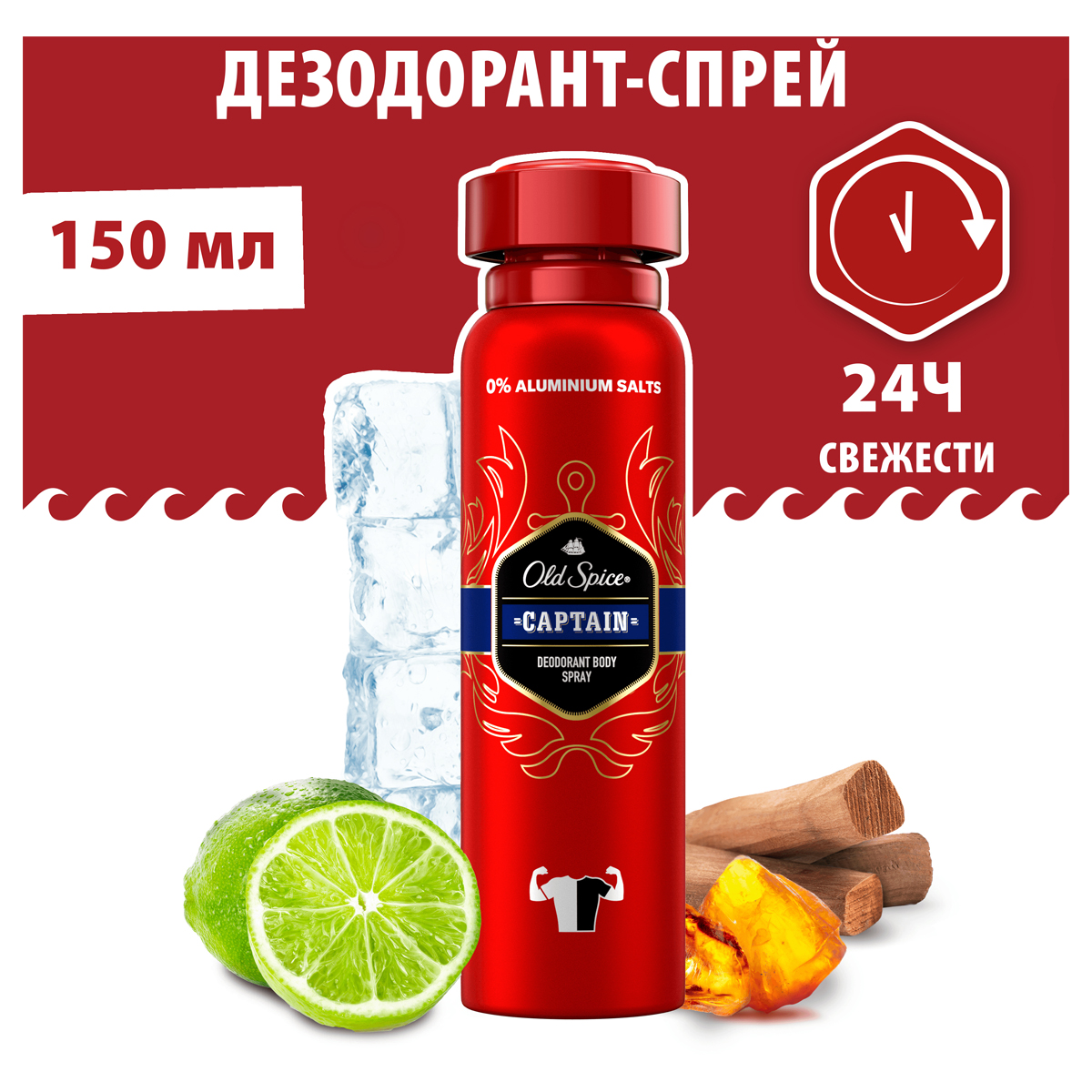 Представь, что мир, который ты жаждешь покорить, – это устрица. Так вот, дезодорант-спрей Old Spice (Олд Спайс) Captain объемом 150 мл – это нож, который поможет раскрыть створки ее раковины, секретное оружие, которое не знает неудач. Даже если ты не покоряешь открытые моря, ты покоряешь помещения, наполняя их свежим ароматом цитруса, сандалового дерева, соленых брызг океана и попутного ветра. Хочешь, чтобы твоя эскадра побеждала по всем фронтам? Проще простого – надо просто найти именно свой аромат! Дезодорант-спрей с легкостью вышибает неприятный запах, заряжая тебя свежестью на 24 ч, капитанской решительностью, смелостью и отвагой. Дезодорант Captain в форме спрея – никаких пятен на одежде, 0% алюминия в составе формулы. Зарядись энергией и мощью Old Spice с самого утра – попробуй гель для душа и шампунь 2в1 Captain, а затем используй дезодорант, чтобы потопить неприятный запах пота. Капитан, освежитесь, и полный вперед! Преимущества: - Не оставляет пятен на одежде (и твоей репутации) - 24 часа свежести - Один пшик – весь день мужик - Без алюминия в составе формулы - Мужичайший аромат, который будет с тобой весь день