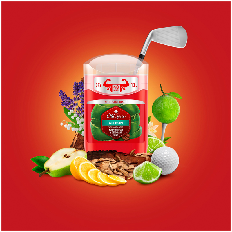 Твердый дезодорант-антиперспирант Old Spice Citron знает все о твоих бесхитростных желаниях: играть в видеоигры с высокоинтеллектуальной красавицей, сидя в уютном гамаке в джунглях, пока мартышки выжимают апельсиновый сок прямо тебе в рот. Дезодорант-антиперспирант Old Spice обеспечивает такую возможность на срок до 48 часов. Забудь о чрезмерном потоотделении и неприятном запахе подмышками. Только мужественность. Преимущества: • Твердый дезодорант-антиперспирант Old Spice для защиты от неприятного запаха и пота на 48 часов • Цитрусовый аромат с нотами лайма и сандалового дерева подчеркивает мужественность • Настолько мощный, что без всяких усилий побеждает неприятные запахи