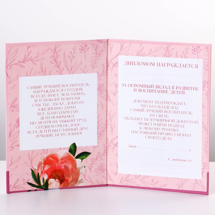 Диплом «Любимому воспитателю», А5, 21 х 15 см.