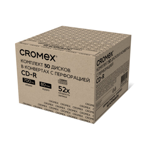 Диск CD-R CROMEX, 700 Mb, 52x, в конверте с перфорацией КОМПЛЕКТ 50 шт., 514306