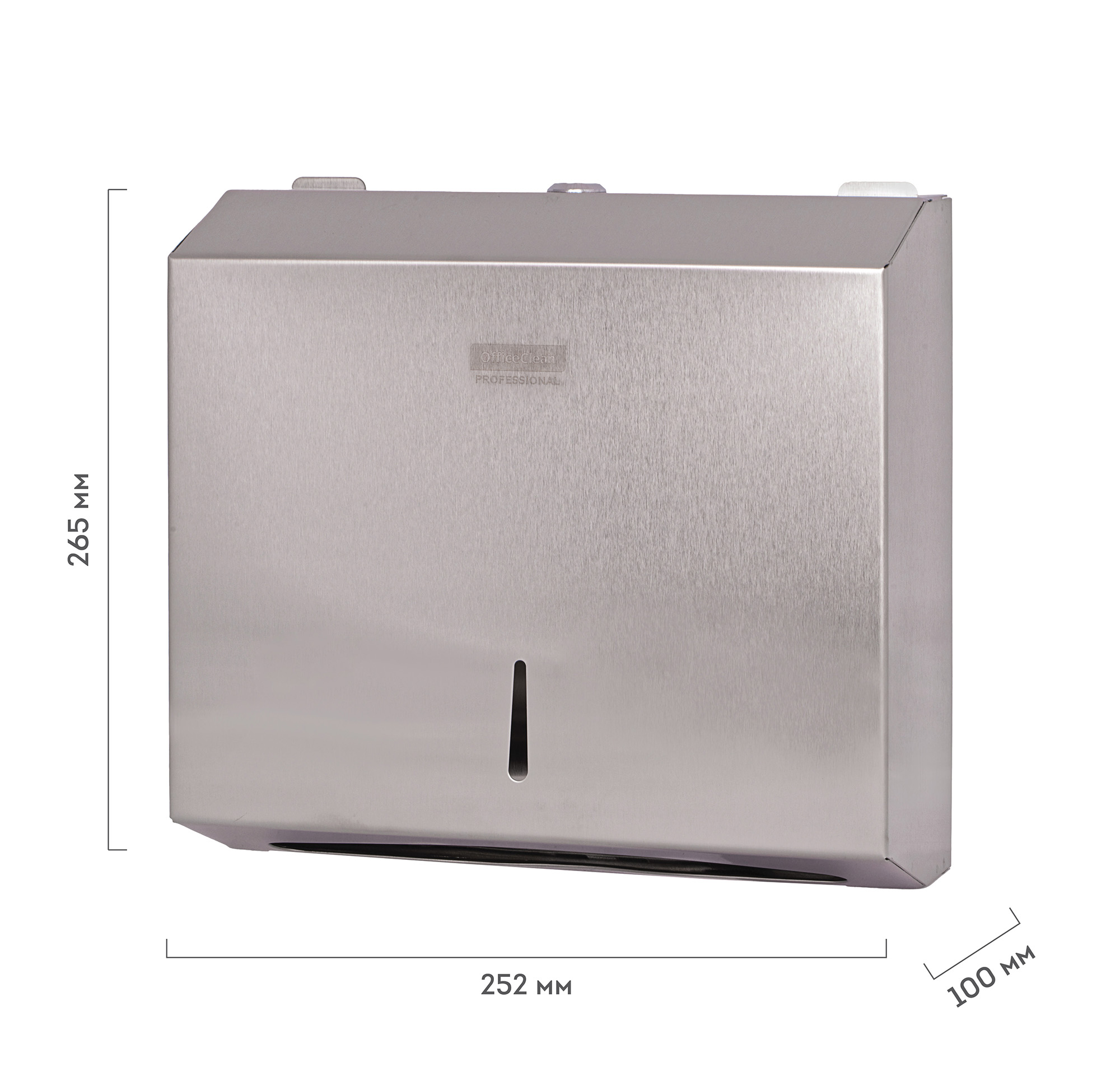 Диспенсер для бумажных полотенец OfficeClean Professional (Z сложение), нержавеющая сталь— это не только удобный аксессуар, поддерживающий должный уровень гигиены, но и своеобразная «визитная карточка» любого заведения. Этот, на первый взгляд, весьма незначительный элемент интерьера положительно влияет на эстетическое восприятие посетителей и, как следствие, на общую оценку и репутацию учреждения. <br/><br/>Преимуществами товара являются простота в эксплуатации, надежность конструкции и обеспечение высокого уровня гигиены.<br/><br/>Металлический антивандальный корпус станет оптимальным решением для туалетных комнат с большой проходимостью, поможет выдержать не только физическое воздействие, но и предотвратит кражу расходного материала.<br/><br/>Вид расходных материалов: листовой. Серия: нет. Система : Tork Н2. Подходят бумажные полотенца: Z. Режим подачи полотенец: при отрывании предыдущего. Индикаторы: окно для контроля заполнения. Вместимость полотенец: 2 пач./рулонов. Антивандальный корпус: да. Тип закрывания: металлический ключ. Комплектация: ключи, крепежные материалы. Сочетается с расходными материалами других производителей: да. Материал замка: металл. Материал корпуса: металл. Цвет корпуса: нержавеющая сталь (матовый). <br/>Ширина: 252 мм. Высота: 265 мм. Глубина: 100 мм. Артикул производителя: 301963.<br/><br/>Причина уценки: механические повреждения упаковки.<br/><br/><br/>