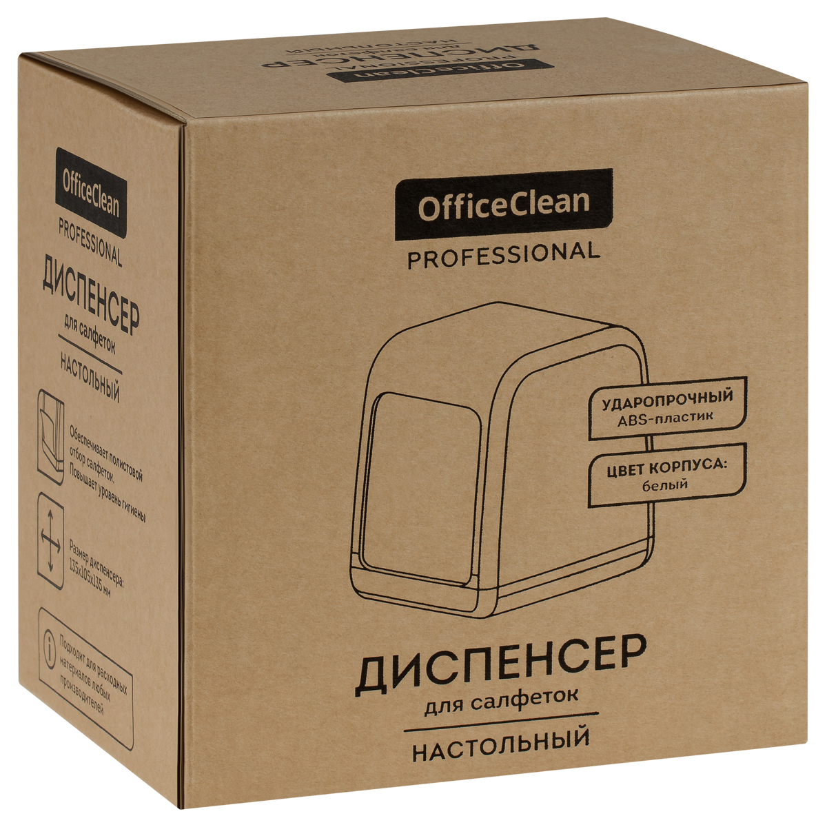 Уценка. Ограничений в дальнейшем использовании нет. Повреждения товара нет.<br/>Причина уценки: белая этикетка на упаковке ед.товара<br/><br/><br/>Диспенсер настольный OfficeClean PROFESSIONAL предназначен для дозированной выдачи бумажных салфеток. Материал - пластик. Артикул расходного материала - 279681<br/><br/>Уцененный товар подлежит возврату или обмену в случае обнаружения недостатков, о которых покупатель не был проинформирован перед покупкой