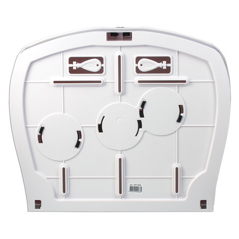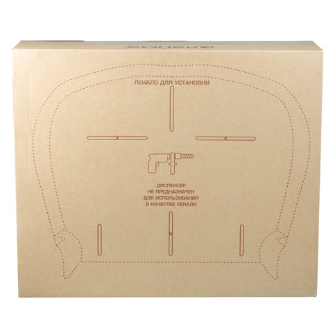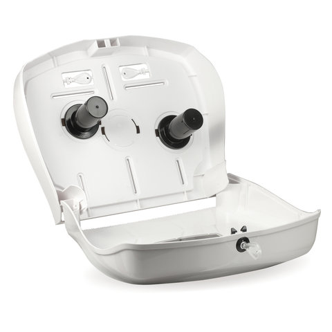 Антивандальный корпус изготовлен из ABS-пластика. Обеспечивает высокий уровень гигиены и комфортную подачу туалетной бумаги. Имеется окошко для контроля остатка расходных материалов. Сочетается с расходными материалами других производителей. Оборудован замком с ключом. В комплект входят крепежные материалы для установки. Особенностью данного диспенсера является возможность сочетать два вида расходных материалов благодаря наличию съемных втулок: либо один рулон с длиной намотки до 525 м, либо один рулон с длиной намотки до 200 м плюс запасной рулон частично израсходованный. Размер - 348х428х130 мм.